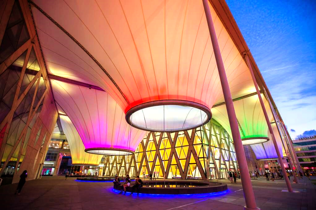 前倉庫區,現在是畫廊,有旋轉展品、戶外雕塑和商店。